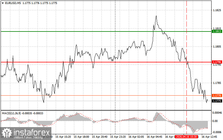 The test of the 1.1796 price level occurred when the MACD indicator had already moved significantly below the zero line, which in such a bullish market clearly limited the pair's downward potential. For this reason, I did not sell the euro.