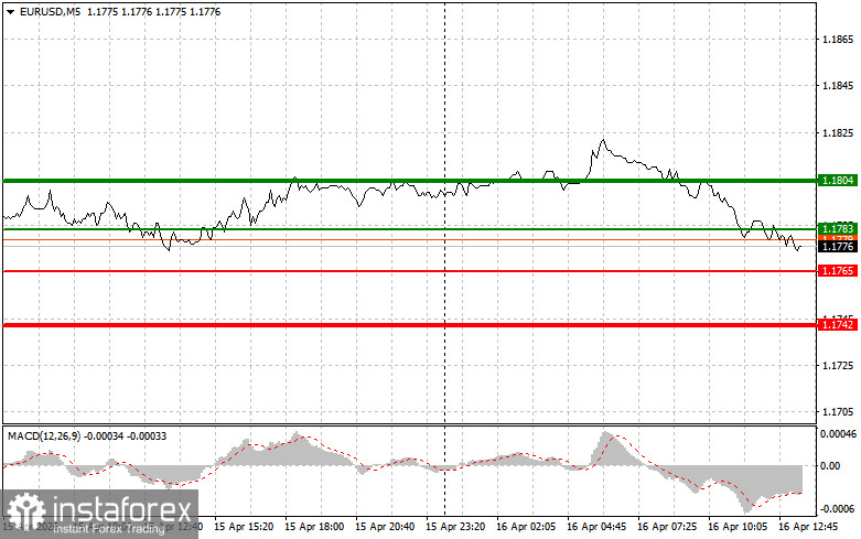 Scenario No. 1: Today, buying the euro is possible upon reaching the level of 1.1783 (green line on the chart), with a target of 1.1804. At 1.1804, I plan to exit the market and also consider selling in the opposite direction, expecting a move of 30–35 points from the entry level. Euro growth today should only be expected after very weak US data.Important: Before buying, make sure the MACD indicator is above the zero line and just beginning to rise.