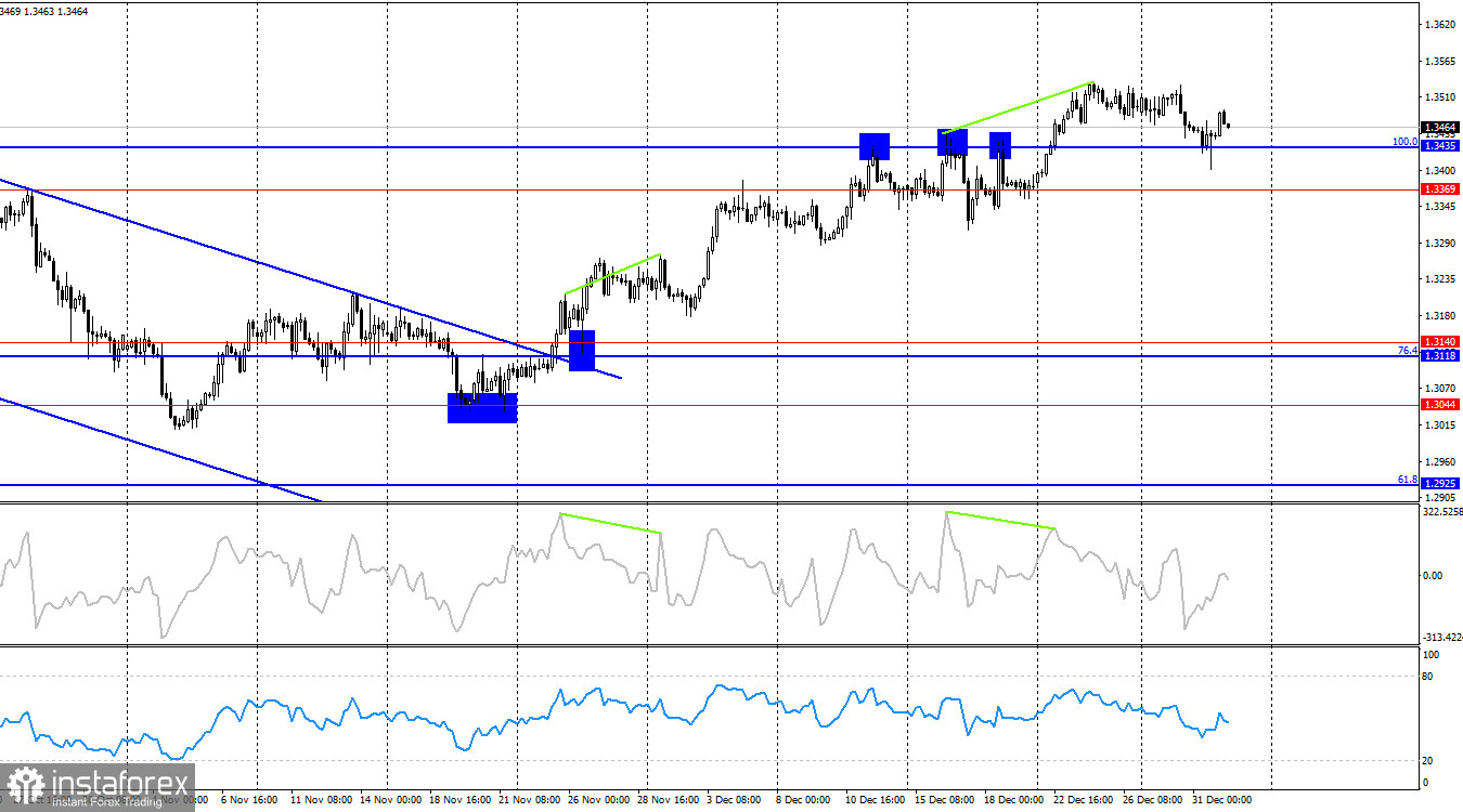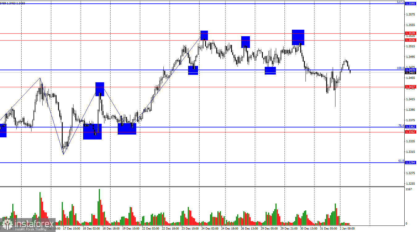 The wave situation remains "bullish." The last completed upward wave broke the previous peak, while the new downward wave has so far failed to break the previous low. The news background for the pound has been weak in recent weeks, but the information backdrop in the U.S. also leaves much to be desired. At the beginning of the new year, the bulls retreated slightly, but the trend remains intact, and traders are waiting for economic data.