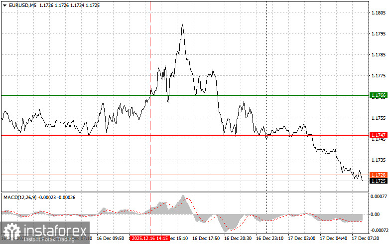 Тест цены 1.1766 пришелся на момент, когда индикатор MACD много прошел вверх от нулевой отметки, что ограничивало восходящий потенциал пары. По этой причине я не покупал евро.