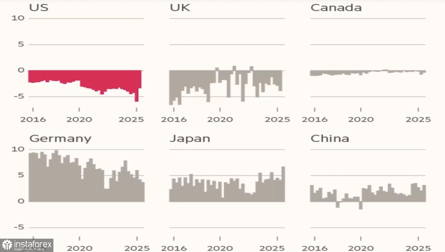 Белый дом в апреле поднял средний размер пошлины на импорт с 2% до 14% с целью сокращения колоссального дефицита внешней торговли Соединенных Штатов с другими государствами. Наряду с тарифами этому, по мнению Дональда Трампа, будет способствовать и девальвация гринбэка. Тем не менее если экспорт других стран в США сократится, что он и делает, нерезиденты будут получать меньше долларов. В результате покупать казначейские облигации будет не за что, и Вашингтон столкнется с проблемой финансирования дефицита бюджета.