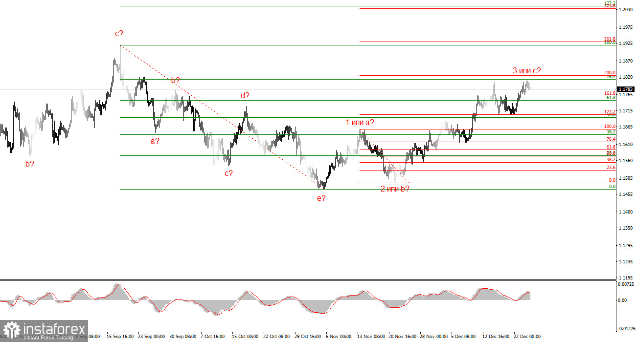 Поэтому задачей максимум для инструмента EUR/USD на остаток 2025 года я считаю сохранение текущих позиций. До конца года мы вряд ли увидим сильные движения. На следующей неделе в понедельник, вторник и среду новостной фон будет отсутствовать. А потом – Новый год и еще один выходной день. Следовательно, вся следующая неделя также получится праздничной. Лишь в пятницу можно ожидать пробуждения рынка.
