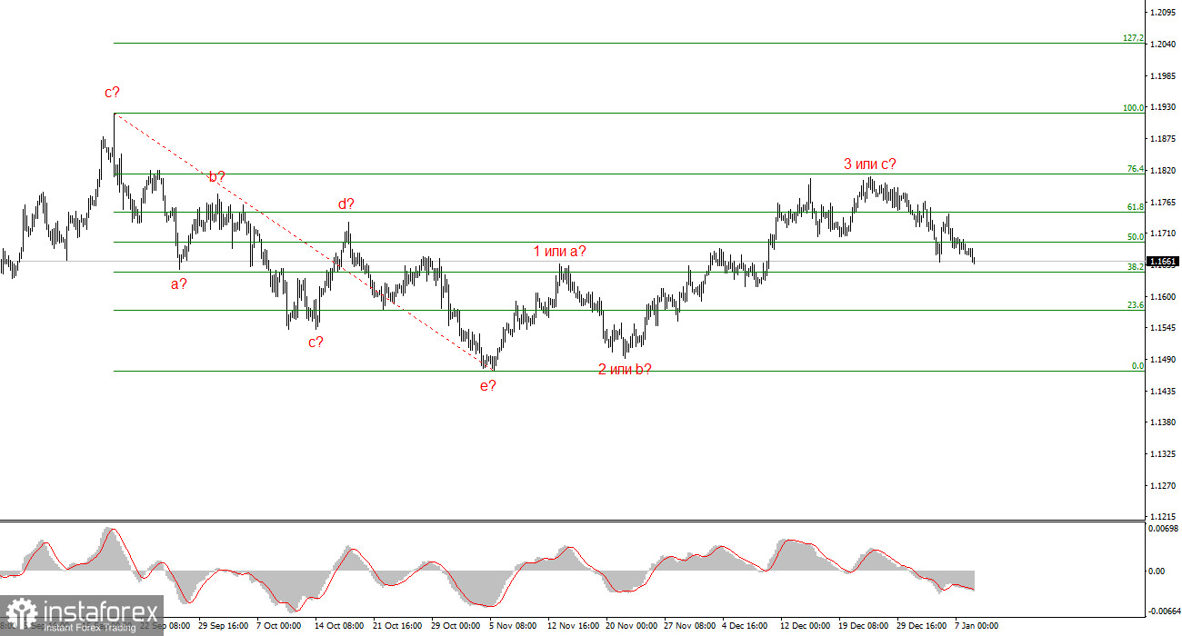 Волновая разметка 4-часового графика для инструмента EUR/USD имеет вполне понятный, хоть и довольно сложный вид в последние месяцы(нижняя картинка). Об отмене повышательного участка тренда, который берет свое начало в январе прошлого года, речи не идет, но волновая структура, начиная с 1 июля 2025 года, приняла сложный и протяженный вид. На мой взгляд, инструмент завершил построение коррекционной волны 4, которая приняла очень нестандартный вид. Внутри этой волны мы наблюдали исключительно коррекционные структуры, поэтому сомнений в коррекционном характере этой волны не возникает никаких.