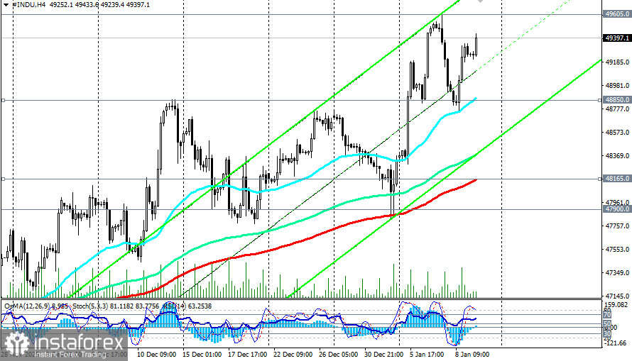 Важная зона поддержки 48165.0 – 47900.0, при приближении к которой в случае коррекционного снижения, возможно рассмотрение новых длинных позиций и вход в рынок по более выгодным ценам. Впрочем, пробой сегодняшнего максимума 49430.0 тоже станет сигналом для новых покупок, подтверждающим сохранение бычьего тренда и преимущество длинных позиций.