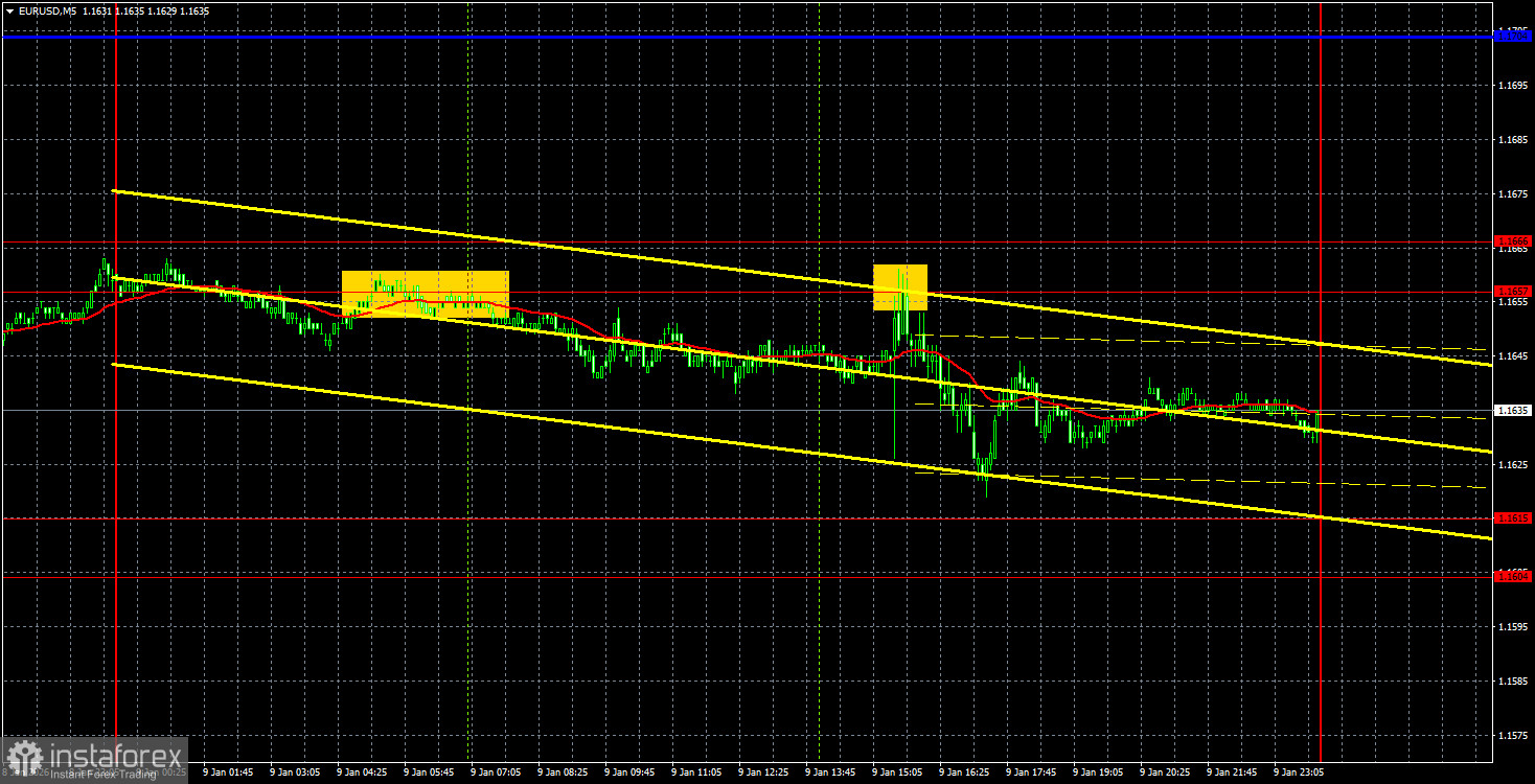 На 5-минутном ТФ в пятницу было сформировано два торговых сигнала на продажу в области 1,1657-1,1666. Во втором случае цена сумела пройти вниз около 30 пунктов... Волатильность на рынке остается крайне слабой даже в те дни, когда макроэкономический фон очень сильный.