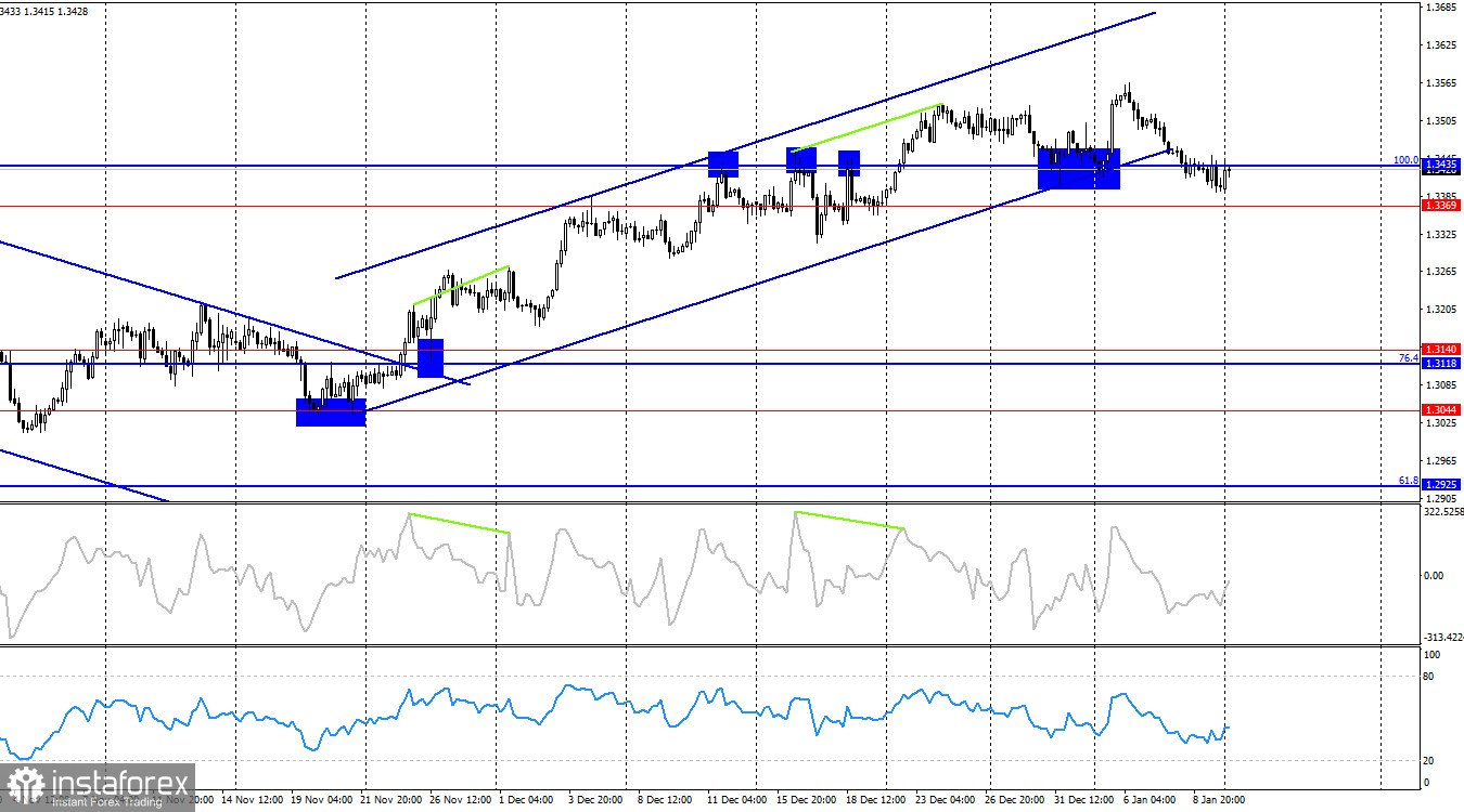 Сетки уровней Фибоначчи построены по 1,3470–1,3010 на часовом графике и по 1,3431–1,2104 на 4-часовом.