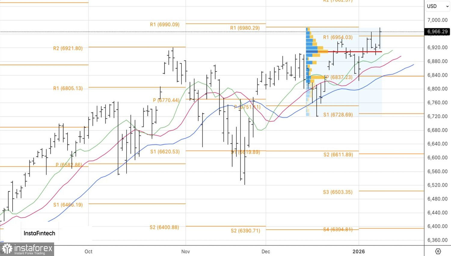 S&P 500 приближается к психологически важному уровню 7000, индекс Доу-Джонса – к 50000 и отметился лучшим стартом года с 2003. Russell 2000 продемонстрировал самое большое недельное расхождение с широким фондовым индексом с 2024. Инвесторы скупают акции компаний с малой капитализацией как горячие пирожки. Эти бумаги чувствительны к состоянию здоровья американской экономики. А с ним все в порядке.