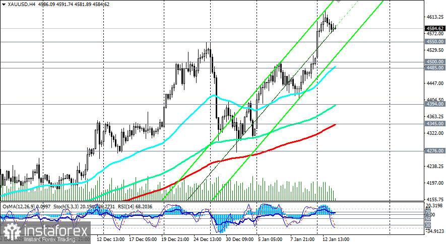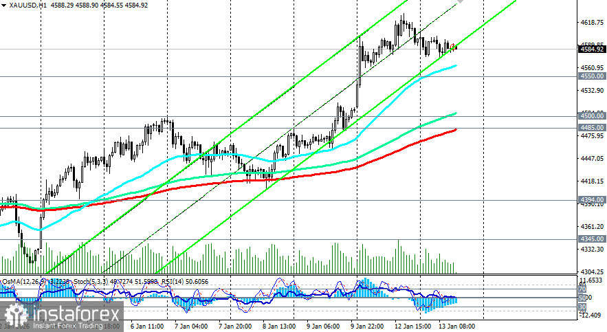 При этом, откат к уровням поддержки 4550.00, 4500.00, 4485.00 (ЕМА200 на 1-часовом графике) предоставляет дополнительные возможности для входа в длинные позиции по более выгодным ценам.