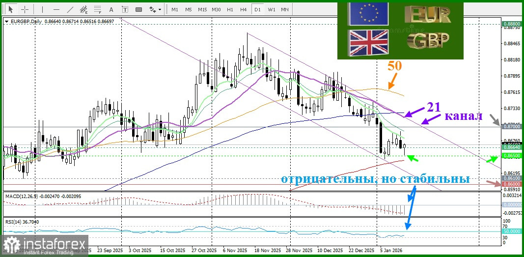 С технической точки зрения пара EUR/GBP остается в пределах четко выраженного нисходящего канала, движение которого началось с ноября 2025 года, сохраняя общий нисходящий тренд.