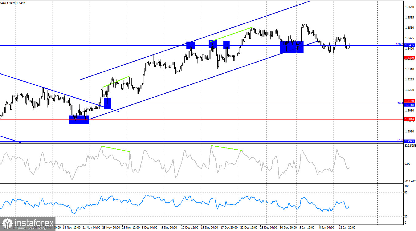 Ситуация с волнами остается «бычьей». Последняя завершенная волна вверх пробила предыдущий пик, а новая волна вниз пробила предыдущий лоу всего на несколько пипсов, чего недостаточно для отмены тренда. Информационный фон для британца был слаб в последние недели, но и информационный фон в Америке тоже оставляет желать лучшего. В последние несколько дней атаковали медведи, но слом «бычьего» тренда произойдет только ниже уровня 1,3403.
