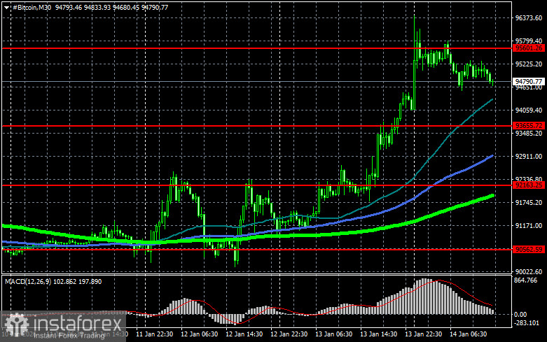 Что касается технической картины Bitcoin, то покупатели сейчас нацелены на возврат уровня $95 600, который открывает прямую дорогу на $97 300, а там уже и рукой подать до уровня 99 400. Самой дальней целью выступит максимум в районе $102 100, преодоление которого будет означать попытки возврата бычьего рынка. В случае падения биткоина покупателей жду на уровне $93 600. Возврат торгового инструмента под эту область может быстро свалить BTC в район $92 100. Самой дальней целью будет область $90 500.