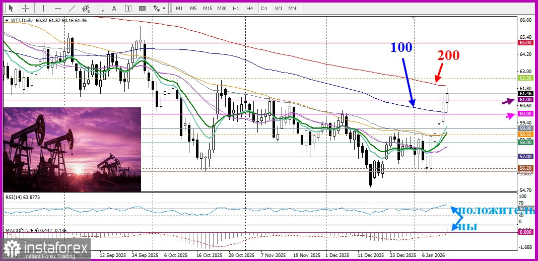 Сегодня американская нефть марки West Texas Intermediate (WTI) взлетела выше круглого уровня 61,00, почти добравшись до очень важной 200-дневной SMA.