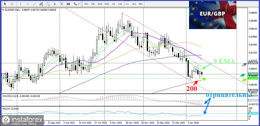 А с технической точки зрения пара торгуется в нисходящем канале. Ближайшей поддержкой является 0,8664, ниже которой пара сможет удержаться на уровне 0,8650 и у 200-дневной SMA. А сопротивлением является 9-дневная ЕМА. Выше которой цены ускорят движение к круглому уровню 0,8700. Но пока осцилляторы на дневном графике отрицательны, быкам о росте говорить рано.