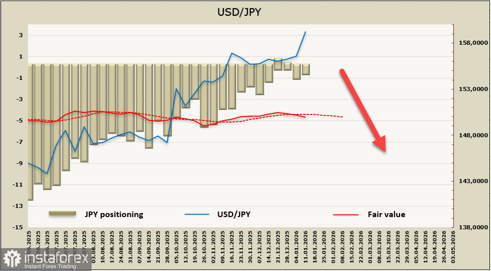 Спекулятивное позиционирование по иене балансирует вблизи нейтральной позиции на протяжении уже 5 недель, по состоянию на конец отчетной недели чистая длинная позиция составляет 0.7 млрд. Расчетная цена уходит вниз от долгосрочной средней.