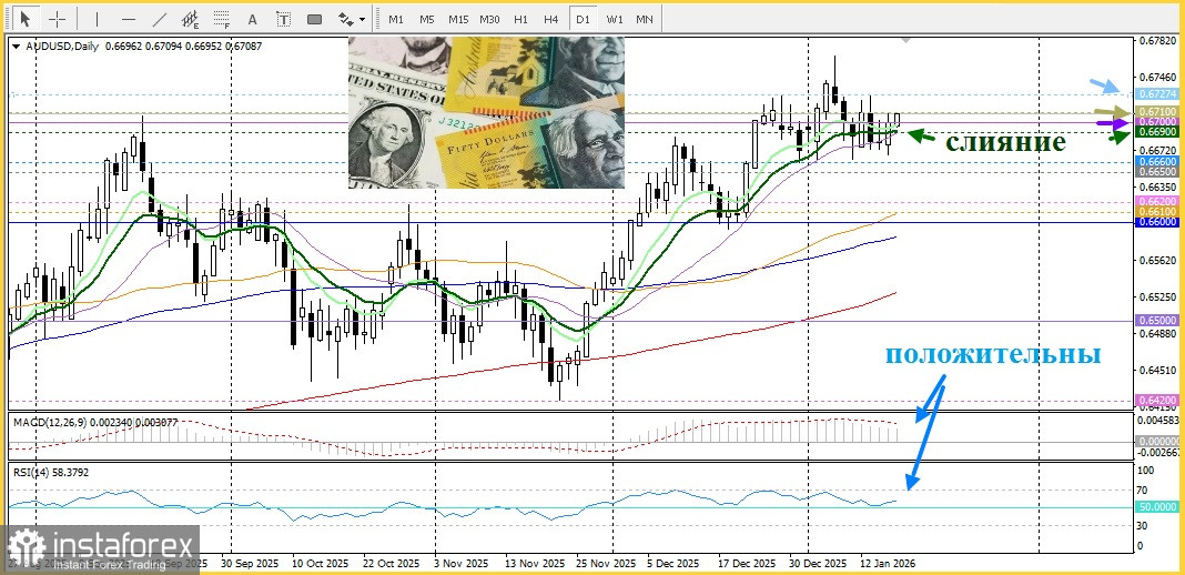 В США свежие индикаторы укрепили прогноз о паузе в снижении ставок ФРС как минимум до конца первого квартала. Минтруд зафиксировал падение первичных заявок на пособия по безработице до ноябрьских минимумов, а региональные опросы по производству в Нью-Йорке и Филадельфии отметили резкое улучшение конъюнктуры. Хотя некоторые чиновники федерального резерва предостерегают от преждевременного смягчения на фоне стойкой инфляции, рынок закладывает хотя бы одно снижения ставки в 2026 году. RBA, напротив, на своих последних заседаниях оставил процентные ставки без изменений, и рынок начинает учитывать повышение ставок. Это способствует поддержанию курса австралийского доллара.