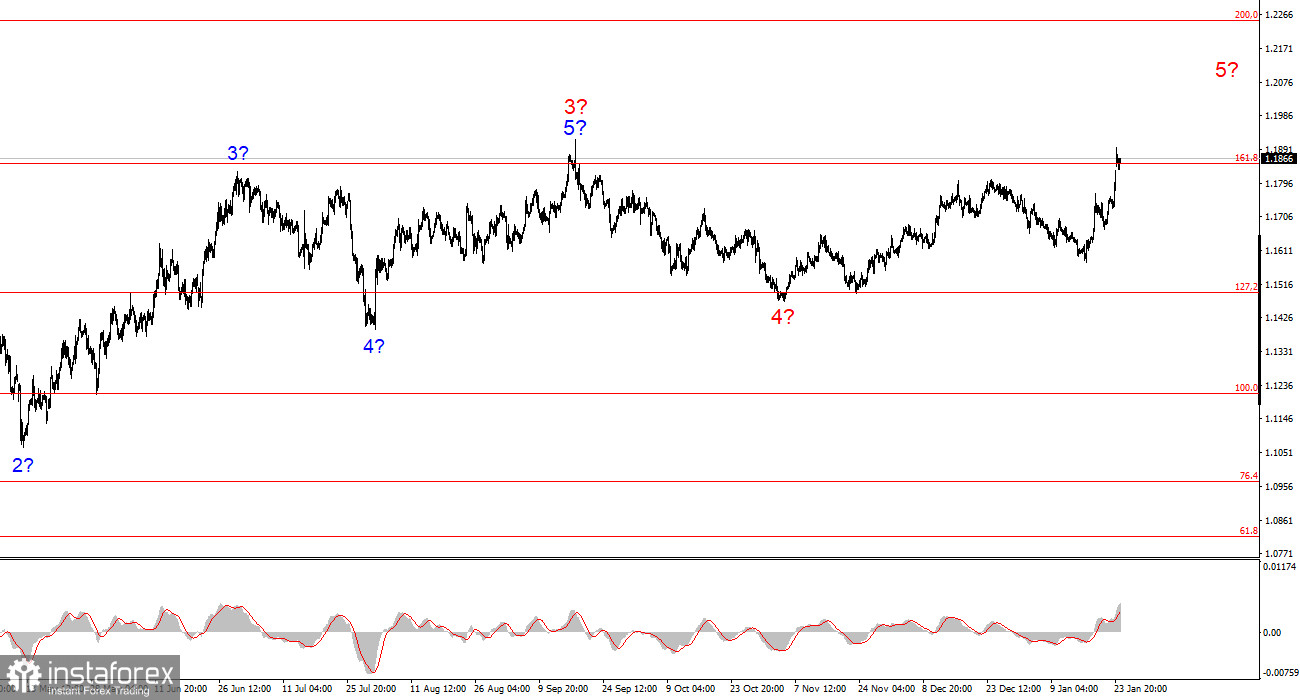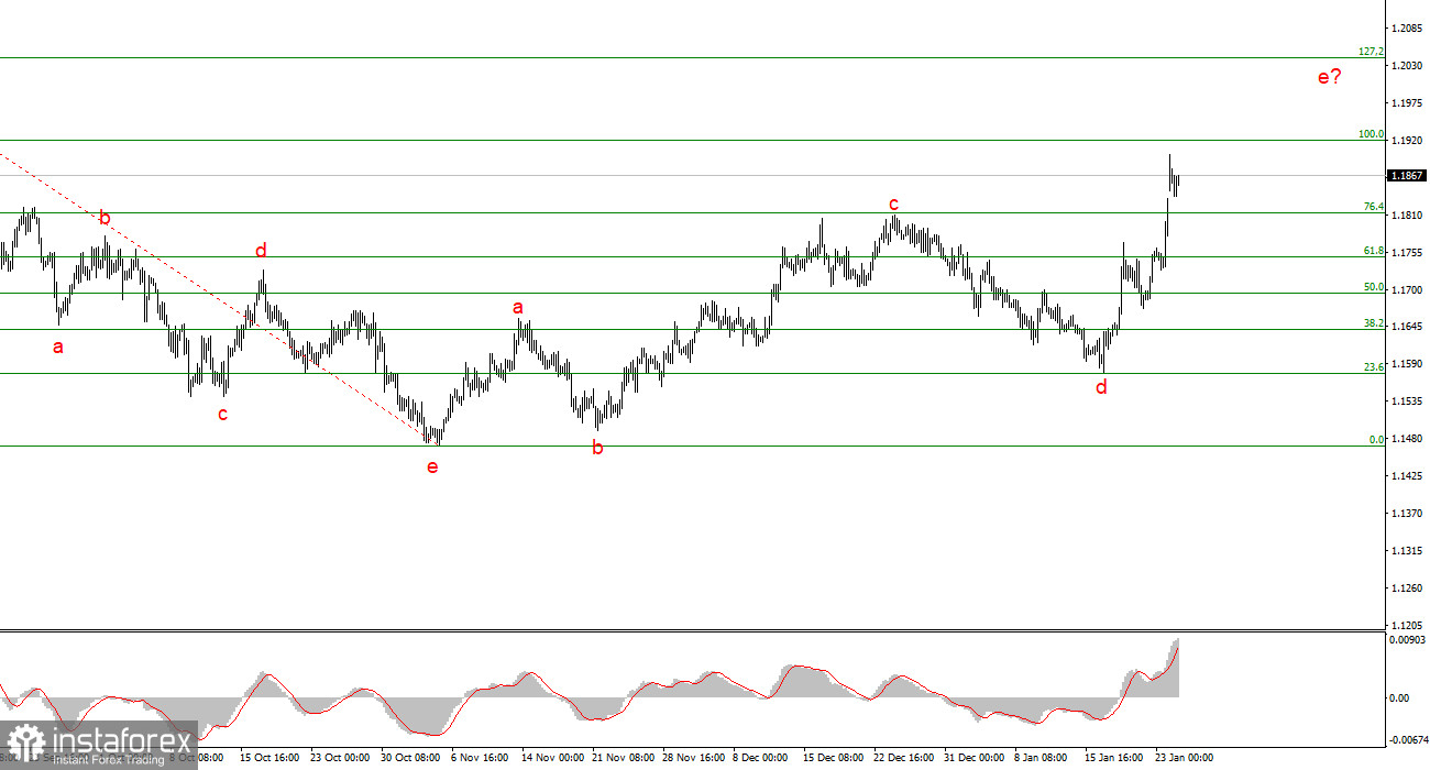 Курс инструмента EUR/USD в течение понедельника практически не изменился, но до конца дня вполне может снизиться еще пунктов на 40-50. Напомню, что в начале нового года рынок не был настроен на распродажи доллара, несмотря на военную интервенцию Трампа в Венесуэле, угрозы всем существующим странам Латинской Америки и угрозы нанести новый авиаудар по Ирану в поддержку протестующим против местной власти гражданам. Однако, когда Трамп вполне серьезно заявил о целях забрать себе Гренландию и ввел торговые пошлины против стран, которые «по каким-то неизведанным причинам» отказались поддержать добровольную сдачу Гренландии, рынок не выдержал. Трейдеры осознали, что 2025 год был цветочками, ягодки – впереди. Если в прошлом году Трамп позволял себе вводить пошлины направо и налево, увольнять управляющих ФРС, критиковать и угрожать всем и вся, то в новом году президент США нацелен на реализацию военных целей и еще большую эскалацию торговой войны.