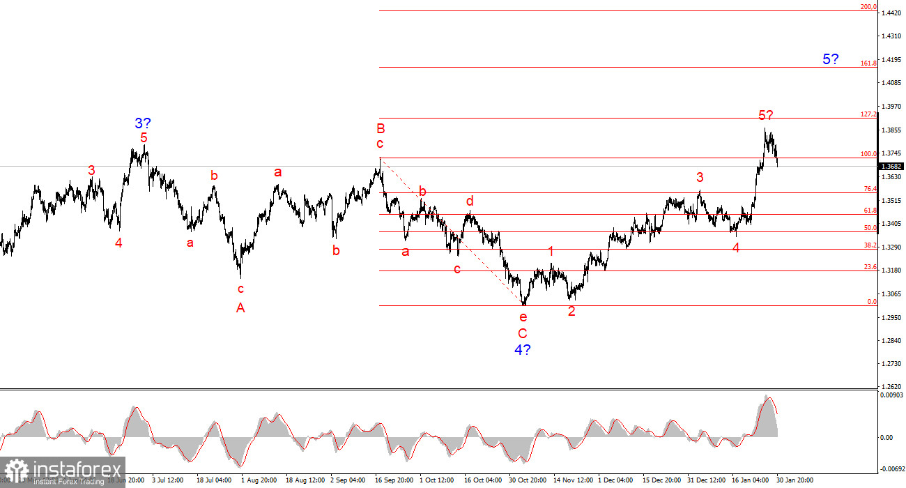 Исходя из проведенного анализа EUR/USD, я делаю вывод, что инструмент продолжает построение повышательного участка тренда. Политика Дональда Трампа и денежно-кредитная политика ФРС остаются весомыми факторами падения американской валюты в долгосрочном плане. Цели текущего участка тренда могут простираться вплоть до 25-й фигуры. На текущий момент я считаю, что глобальная волна 4 завершила свое построение, поэтому ожидаю дальнейшего повышения котировок. Но в ближайшее время я ожидаю понижательную волну, так как серия волн a-b-c-d-e также выглядит завершенно. В ближайшее время мои читатели могут заняться поиском ориентиров для новых покупок.