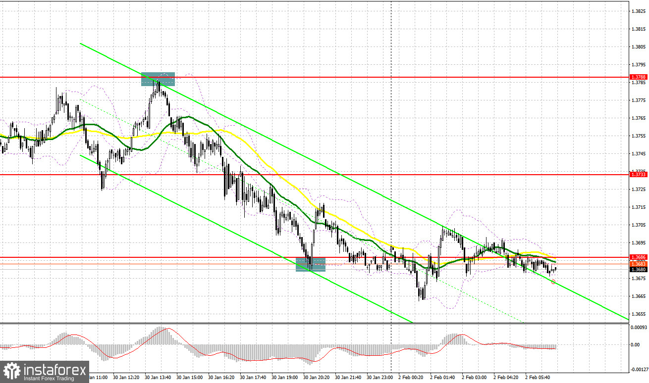 В прошлую пятницу было образовано несколько точка входа в рынок. Давайте посмотрим на 5-минутный график и разберемся с тем, что там произошло. В своем утреннем прогнозе я обращал внимание на уровень 1.3788 и планировал от него принимать решения по входу в рынок. Рост в район 1.3788 произошел, но до образования там точек входа в рынок дело так и не дошло. Во второй половине дня продажи от 1.3788 привели к движению пары вниз более чем на 50 пунктов. Уже ближе к концу дня ложный пробой в области 1.3686 дал точку входа на покупку фунта с коррекцией на 25 пунктов.