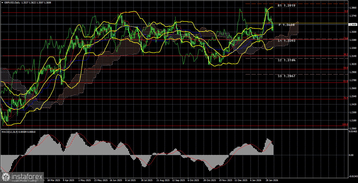 Однако, несмотря на общее падение британской валюты за последние 8 дней на 320 пунктов, даже локальный тренд фактически остается восходящим. Да, мы увидели довольно сильную нисходящую коррекцию, но коррекции могут быть разными по размеру. На дневном ТФ техническая картина и вовсе однозначная. Восходящий тренд не вызывает никаких сомнений. Таким образом, мы склонны считать, что последнее падение фунта – это в некотором роде случайность. На следующей неделе, учитывая события в США, а также неопределенность с Гренландией, Ираном, странами Латинской Америки и будущим самого Трампа, доллар может возобновить свое свободное падение.