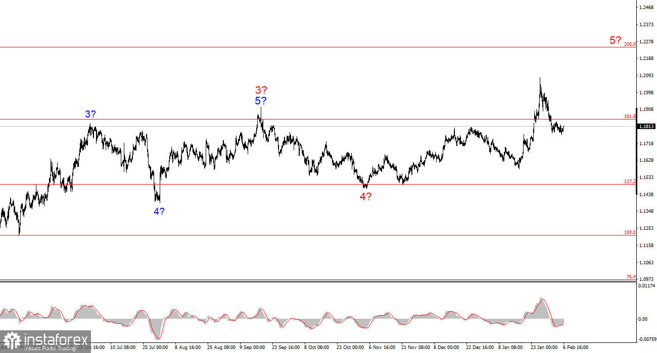 Волновая картина инструмента GBP/USD имеет вполне понятный вид. Пятиволновая повышательная структура завершила свое построение, но глобальная волна 5 может принять гораздо более протяженный вид. Я считаю, что в ближайшее время может наблюдаться построение коррекционного набора волн, после чего возобновиться построение восходящего тренда. Следовательно, в ближайшие недели я могу посоветовать искать возможности для новых покупок. На мой взгляд, при Дональде Трампе фунт стерлингов имеет все шансы стоить 1,45-1,50$. Сам Трамп приветствует снижение курса доллара. Все его действия имеют двойной эффект: снижение доллара и решение внутренних, внешних, торговых и геополитических вопросов.