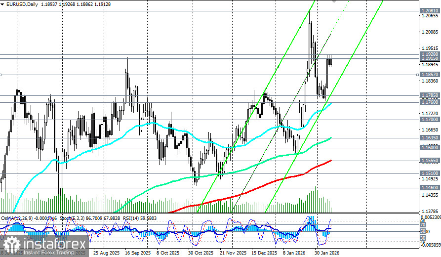 Торги последних дней формируют четкую картину: EUR/USD консолидируется в диапазоне 1.1880 – 1.1930, накопив более 1% роста относительно минимумов прошлой недели. Техническая картина указывает на истощение немедленного восходящего импульса, но фундаментальный фон остается проевропейским.