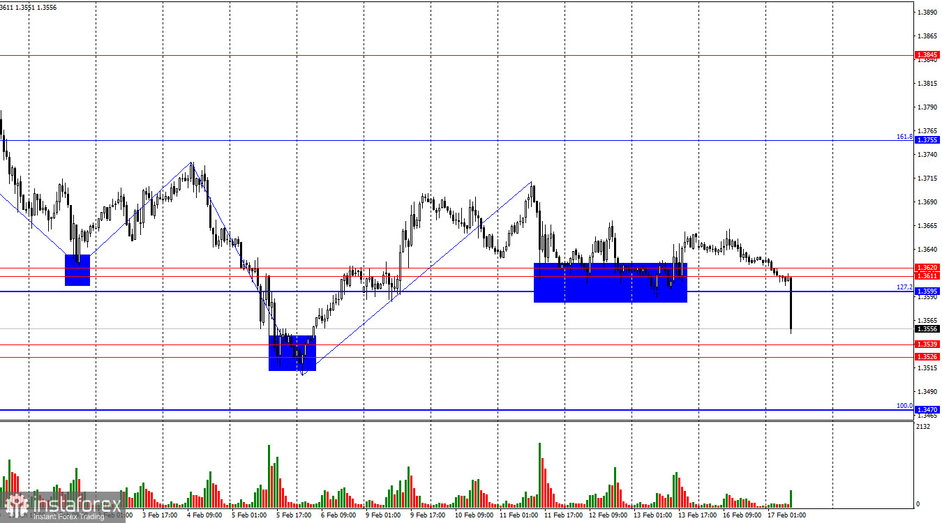 Информационный фон в понедельник отсутствовал в Великобритании, а в Америке отмечался праздник – День президента. Нет, это не День рождения Дональда Трампа. Сегодня утром в Британии вышло несколько важных отчетов, но трейдерам-медведям хватило лишь одного – уровня безработицы, который неожиданно вырос до 5,2%. На отчеты по заработным платам и заявкам на пособия по безработице внимания уже никто не обратил. Британец вновь рухнул вниз, а мы получаем новое подтверждение пассивности быков. Напомню, что на прошлой неделе быки имели все основания атаковать и на основании данных Nonfarm Payrolls за весь 2025 год, и на основании отчета по инфляции за январь. Но предоставленной возможностью они не захотели воспользоваться. Именно – не захотели. Таким образом, медведи продолжают атаковать в данное время лишь потому, что быки не хотят предпринимать никаких активных действий.