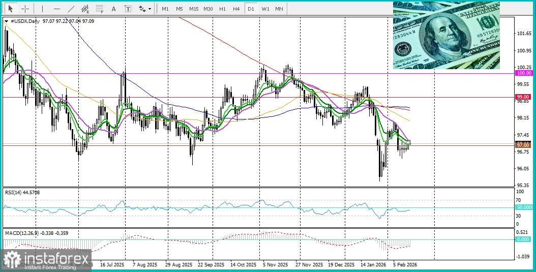 Индекс доллара США (DXY), отражающий его динамику против корзины валют, удерживает умеренный прирост предыдущего дня, находясь выше круглого уровня 97,00, и продолжая оказывать давление на пару EUR/USD.