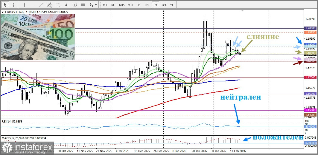 Сегодня во вторник второй день подряд пара EUR/USD испытывает давление со стороны продавцов, находясь на уровне слияния трёх скользящих средних в районе 1,1850, выше круглого уровня 1,1800. Впрочем, общий фундаментальный фон требует осторожности от медведей, перед открытием позиций на продажу.