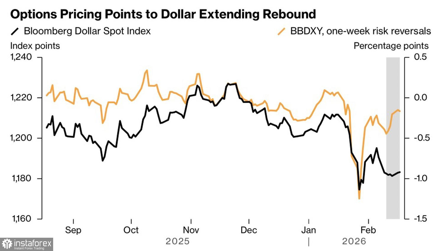Срочный рынок делает ставку на краткосрочное укрепление доллара США против основных мировых валют, о чем сигнализирует динамика рисков разворота. В качестве основной причины выступают длительная пауза в цикле монетарной экспансии ФРС и неторопливость европейский инвесторов. Они не спешат избавляться от американских активов или увеличивать удельный вес хеджирования путем продаж гринбэка при покупке эмитированных в Штатах акций и облигаций.