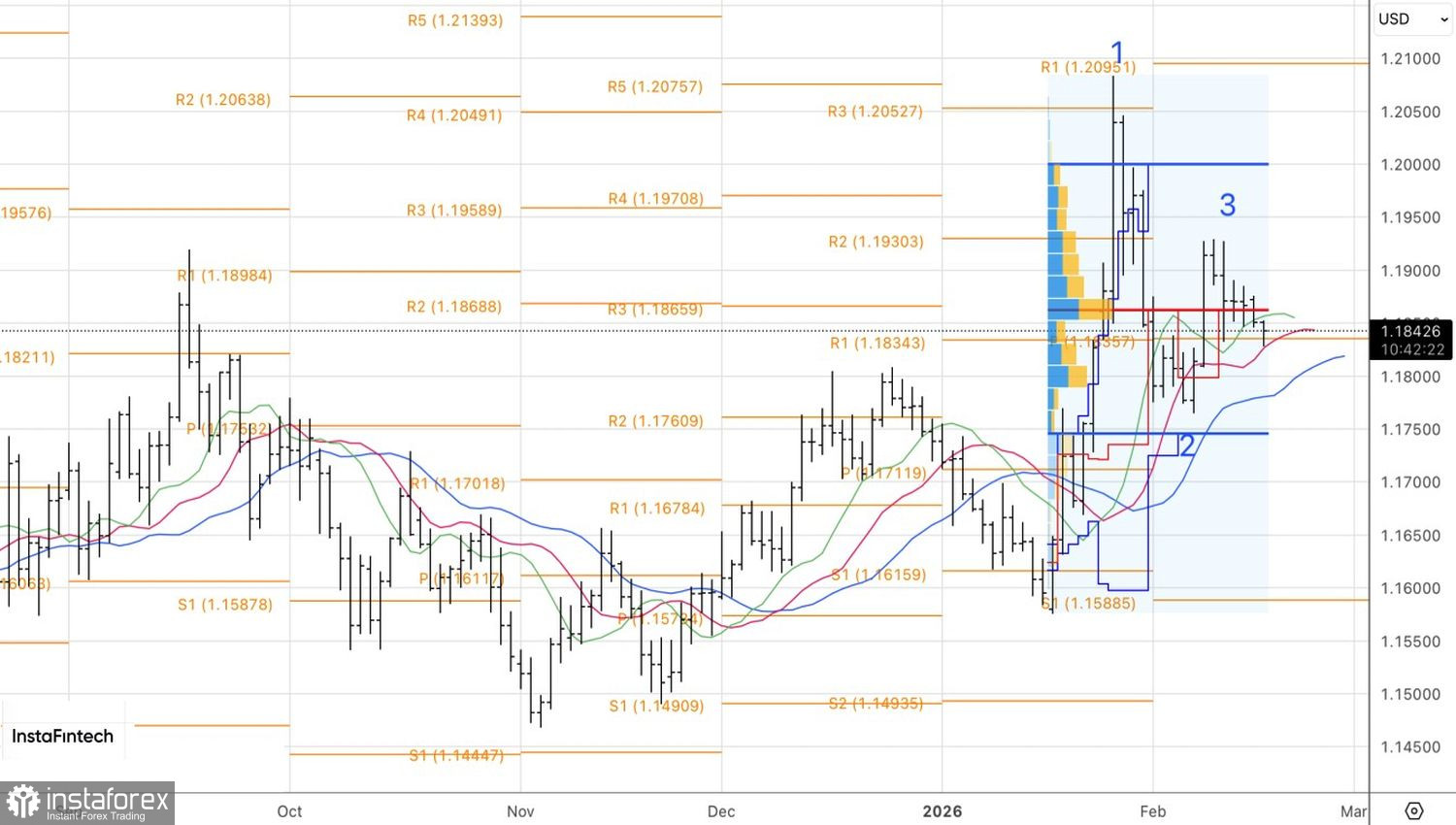 Технически на дневном графике EUR/USD имеет место тест пивот-уровня 1,1835. Успех в этом мероприятии позволит нарастить ранее сформированные шорты.