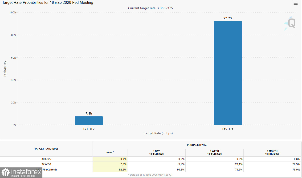 Параллельно рынок труда демонстрирует смешанные, но в целом стабильные сигналы. Число занятых вне сельскохозяйственного сектора в январе выросло на 130,0 тыс., превысив ожидания, что позволило уровню безработицы скорректироваться до 4,3%. Эта комбинация – замедление инфляции при устойчивом рынке труда – усиливает ожидания возврата ФРС к «голубиному» курсу уже в июне, сразу после ожидаемой смены руководства ведомства (в мае).