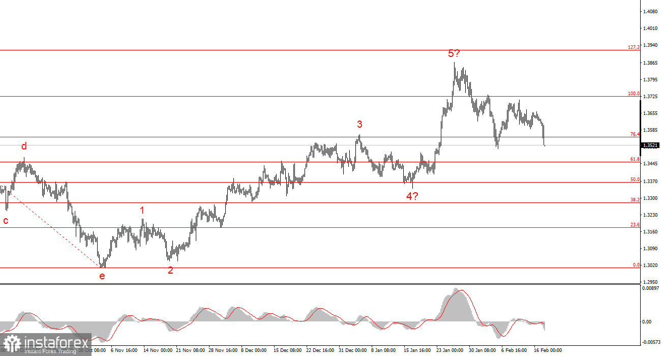Волновая картина инструмента GBP/USD имеет вполне понятный вид. Пятиволновая повышательная структура завершила свое построение, но глобальная волна 5 может принять гораздо более протяженный вид. Я считаю, что в ближайшее время может наблюдаться построение коррекционного набора волн, после чего возобновиться построение восходящего тренда. Следовательно, в ближайшие недели я могу посоветовать искать возможности для новых покупок. На мой взгляд, при Дональде Трампе фунт стерлингов имеет все шансы подняться до 1,45-1,50$. Сам Трамп приветствует снижение доллара, а ФРС имеет возможность уже на следующем заседании вновь понизить ставку.