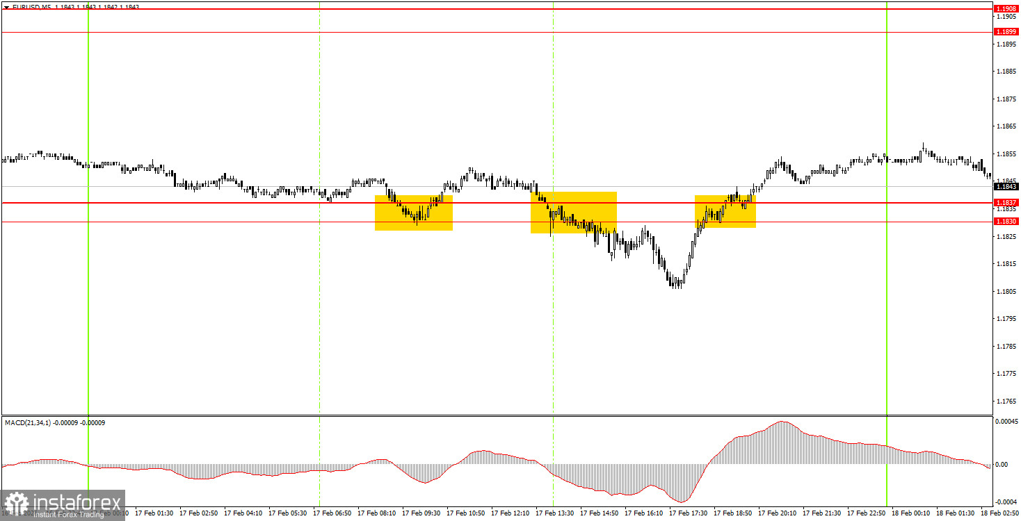 Торговые рекомендации и разбор сделок по EUR/USD на 18 февраля.