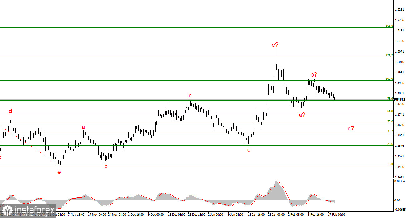 Курс инструмента EUR/USD в среду вновь показал весьма ограниченную амплитуду движений, не превышающую 20-25 базисных пунктов. И вновь американская валюта нашла повод для небольшого, но укрепления. Лично меня не удивляет снижение инструмента EUR/USD. Рынок явно решил построить полноценную трехволновую коррекционную структуру a-b-c перед возобновленим повышательного участка тренда, берущего свое начало еще в прошлом году. Следовательно, лоу волны с должен оказаться ниже лоу волны а. То есть ниже отметки 1,1764. Поэтому, вероятно, падение евровалюты сейчас – это даже хорошо. Оно дает возможность трейдерам открывать сделки на покупку по более выгодным ценам.