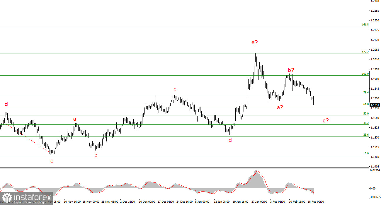 Исходя из проведенного анализа EUR/USD, я делаю вывод, что инструмент продолжает построение повышательного участка тренда. Политика Дональда Трампа и денежно-кредитная политика ФРС остаются весомыми факторами падения американской валюты в долгосрочном плане. Цели текущего участка тренда могут простираться вплоть до 25-й фигуры. На текущий момент я считаю, что инструмент остается в рамках глобальной волны 5, поэтому ожидаю повышения котировок в первой половине 2026 года. Коррекционная структура a-b-c может завершиться в любой момент, так как уже приняла убедительный вид. Я считаю, что сейчас целесообразно заниматься поиском областей и уровней для новых покупок с целями, расположенными около отметок 1,2195 и 1,2367, что приравнивается к 161,8% и 200,0% по Фибоначчи.