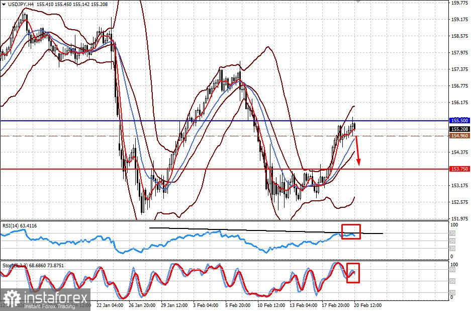 Пара торгуется ниже уровня сопротивления 155.50. Сильное сохранение ожиданий дальнейшего снижения процентных ставок на фоне публикации сегодняшней статистики из США может привести к падению пары к 153.75. Уровнем для ее продажи может служить отметка 154.96.
