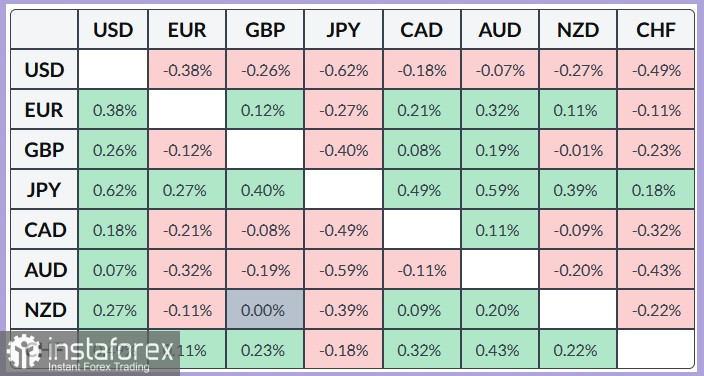 В таблице ниже отражена динамики основных валют за сегодняшний день. Доллар США демонстрирует наибольшее укрепление против австралийского доллара.
