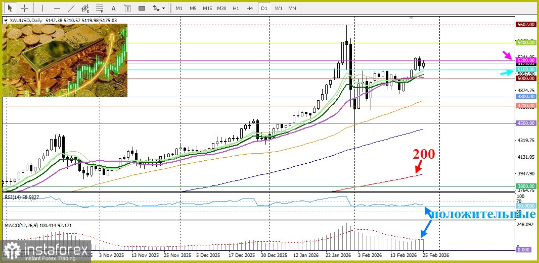 Золото испытывает трудности с обретением устойчивой поддержки или развитием импульса выше уровня 5200 долларов, хотя удерживается неподалеку от февральского максимума. Геополитические напряжения сохраняют актуальность на фоне усиления присутствия американских сил на Ближнем Востоке перед третьим раундом американо-иранских ядерных переговоров в четверг.