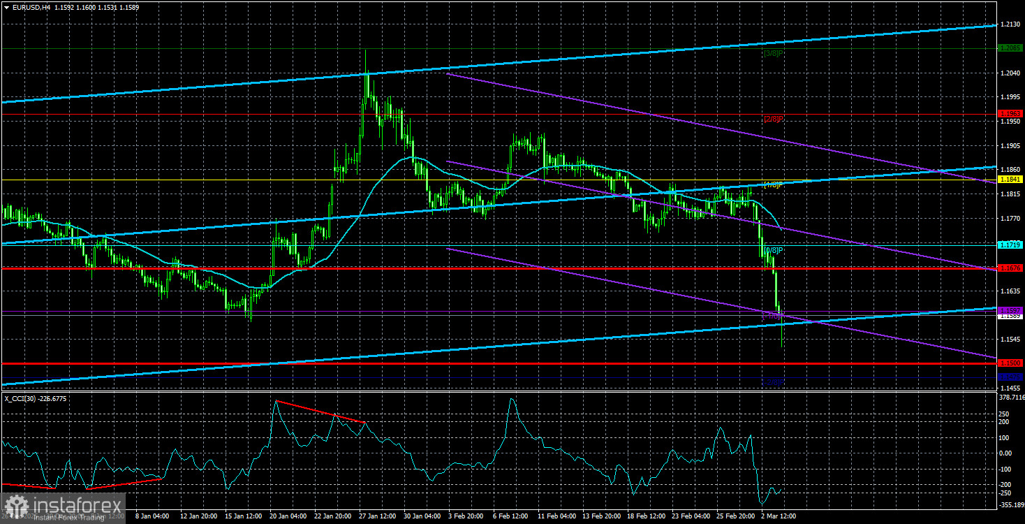 Валютная пара EUR/USD в течение вторника продолжала тотальный обвал. В целом даже нет смысла сейчас перечислять, какая страна на Ближнем Востоке и куда запускала ракеты в течение последних суток. Главное – другое. Ни о каком быстром завершении конфликта речи не идет. Напомним, что две предыдущие военные операции Трампа длились менее суток. Сначала Трамп ударил по ядерным объектам того же Ирана прошлым летом, а в начале текущего года произвел захват лидера Венесуэлы Николаса Мадуро. В обоих случаях это был блицкриг. Сейчас же – полноценная война(а никакая не спецоперация), которая может длиться не просто долго, а очень долго. Кстати, сам Трамп не исключен отправку в Иран сухопутных войск.