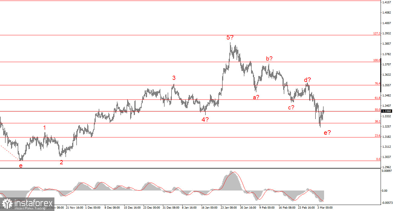 Исходя из проведенного анализа EUR/USD, я делаю вывод, что инструмент продолжает построение повышательного участка тренда. Политика Дональда Трампа и денежно-кредитная политика ФРС остаются весомыми факторами падения американской валюты в долгосрочном плане. Цели текущего участка тренда могут простираться вплоть до 25-й фигуры. На текущий момент я считаю, что инструмент остается в рамках глобальной волны 5, поэтому ожидаю повышения котировок в первой половине 2026 года. Коррекционная структура a-b-c-d-e может завершиться в любой момент, так как уже приняла убедительный вид. Я считаю, что сейчас целесообразно заниматься поиском областей и уровней для новых покупок с целями, расположенными около отметок 1,2195 и 1,2367, что приравнивается к 161,8% и 200,0% по Фибоначчи.