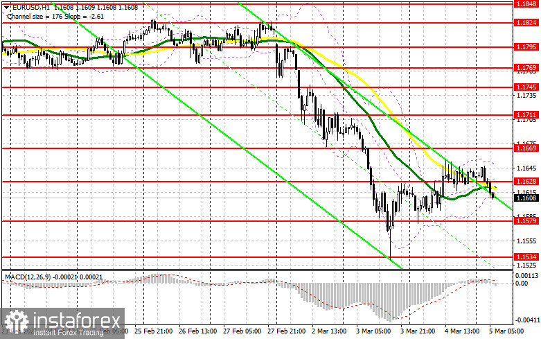 Сильный отчет от ADP по росту числа занятых в частном секторе США не оказал серьезной поддержки американскому доллару. Это говорит о том, что многие трейдеры сейчас больше сосредоточены не геополитическом конфликте и войне США и Израиля с Ираном. Что касается сегодняшней статистики, то в первой половине дня ожидаются цифры по изменению объема розничной торговли еврозоны за январь этого года, выступление президента Бундесбанка Йоахима Нагеля и отчет ЕЦБ со встречи по монетарной политике. Учитывая, что серьезных решений по изменению в политики на прошлом заседании не принималось, вряд ли свежая публикация данных сильно поможет евро с дальнейшим ростом. В случае снижения евро, первого проявления покупателей ожидаю в районе 1.1579. Формирование там ложного пробоя даст точку входа в длинные позиции с целью восстановления пары к уровню 1.1628, образованному по итогам вчерашнего дня. Прорыв и обратный тест этого диапазона станут подтверждением правильных действий на покупку евро уже в расчете на более сильный рывок к сопротивлению 1.1669, что остановит развитие медвежьего рынка. Там же ожидаю активного проявления продавцов. Самой дальней целью выступит максимум 1.1711, где буду фиксировать прибыль. При варианте снижения EUR/USD и отсутствия активности в районе 1.1579, евро может просесть более крупно – особенно в рамах геополитического конфликта. В таком случае продавцы попытаются дотянуться до следующего интересного уровня 1.1534. Лишь формирование там ложного пробоя будет подходящим условием на покупку евро. Открывать длинные позиции сразу на отскок будут от 1.1493 с целью восходящей коррекции в 30-35 пунктов внутри дня.