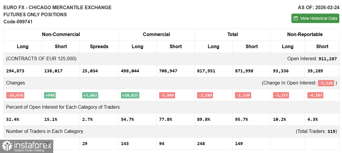 В COT-отчете (Commitment of Traders) за 24 февраля наблюдалось сокращение длинных позиций и небольшой рост коротких. Но учитывая, что США начали войну с Ираном, в настоящее время этот отчет уже не имеет такой актуальности, какую мог бы иметь. Так что лучше всего сосредоточится на дальнейшем развитии конфликта на Ближнем востоке и покупках американского доллара против рисковых активов, в том числе и евро. В COT-отчете указано, что длинные некоммерческие позиции снизились на 16 676 до уровня 294 873, в то время как короткие некоммерческие позиции выросли на 948 до уровня 138 017. В результате спрэд между длинными и короткими позициями вырос на 3 662.