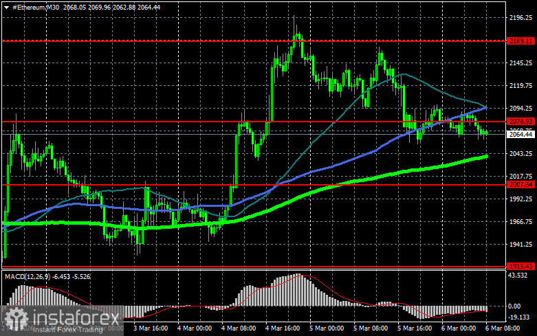 Что касается технической картины Ethereum, то очевидное закрепление выше уровня в $2078 открывает прямую дорогу на $2169. Самой дальней целью выступит максимум в районе $2279, преодоление которого будет означать укрепление бычьих настроений рынка и возврат интереса покупателей. В случае падения эфира покупателей жду на уровне $2007. Возврат торгового инструмента под эту область может быстро свалить ETH в район $1915. Самой дальней целью будет область $1845.