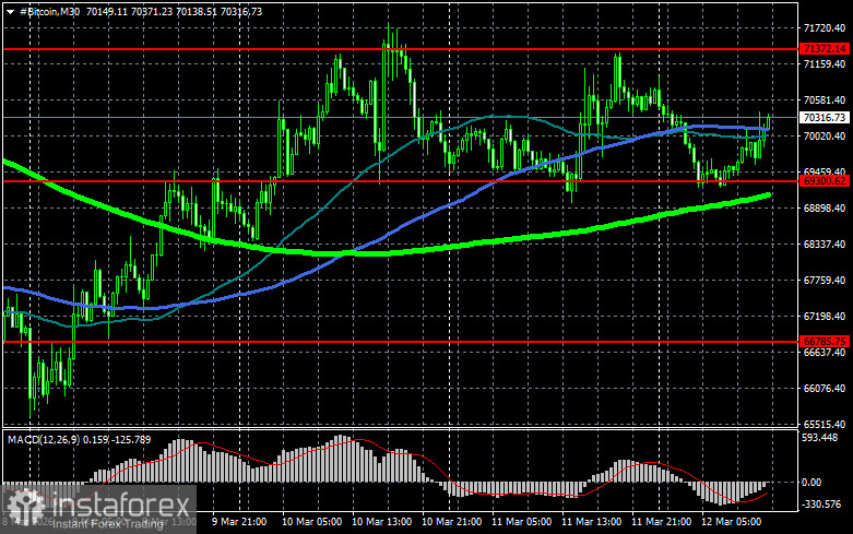 Что касается технической картины Bitcoin, то покупатели сейчас нацелены на возврат уровня $71 300, который открывает прямую дорогу на $73 000, а там уже и рукой подать до уровня 74 600. Самой дальней целью выступит максимум в районе $77 400, преодоление которого будет означать попытки возврата бычьего рынка. В случае падения биткоина покупателей жду на уровне $69 300. Возврат торгового инструмента под эту область может быстро свалить BTC в район $66 700. Самой дальней целью будет область $64 900.