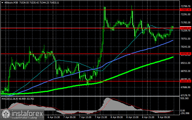 Bitcoin, $71 400, $72 500, 75 600. $78 600, . $69 800. BTC $68 000. $66 400.