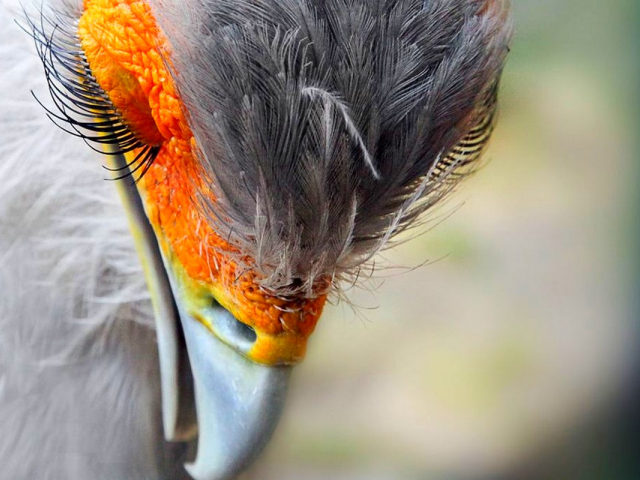 Если бы среди птиц проводился конкурс красоты, птица-секретарь заняла бы первое место благодаря своим невероятно длинным, загнутым вверх ресницам. На самом деле это вовсе не волосы, а модифицированные перья, лишенные бороздок. Они придают птице сходство с голливудской дивой 50-х годов. Эти ресницы выполняют важнейшую роль во время охоты в высокой траве африканских степей. Птица-секретарь проводит большую часть времени на земле, выслеживая змей и грызунов, и густые «перьевые ресницы» защищают ее глаза от колючей растительности и пыли.